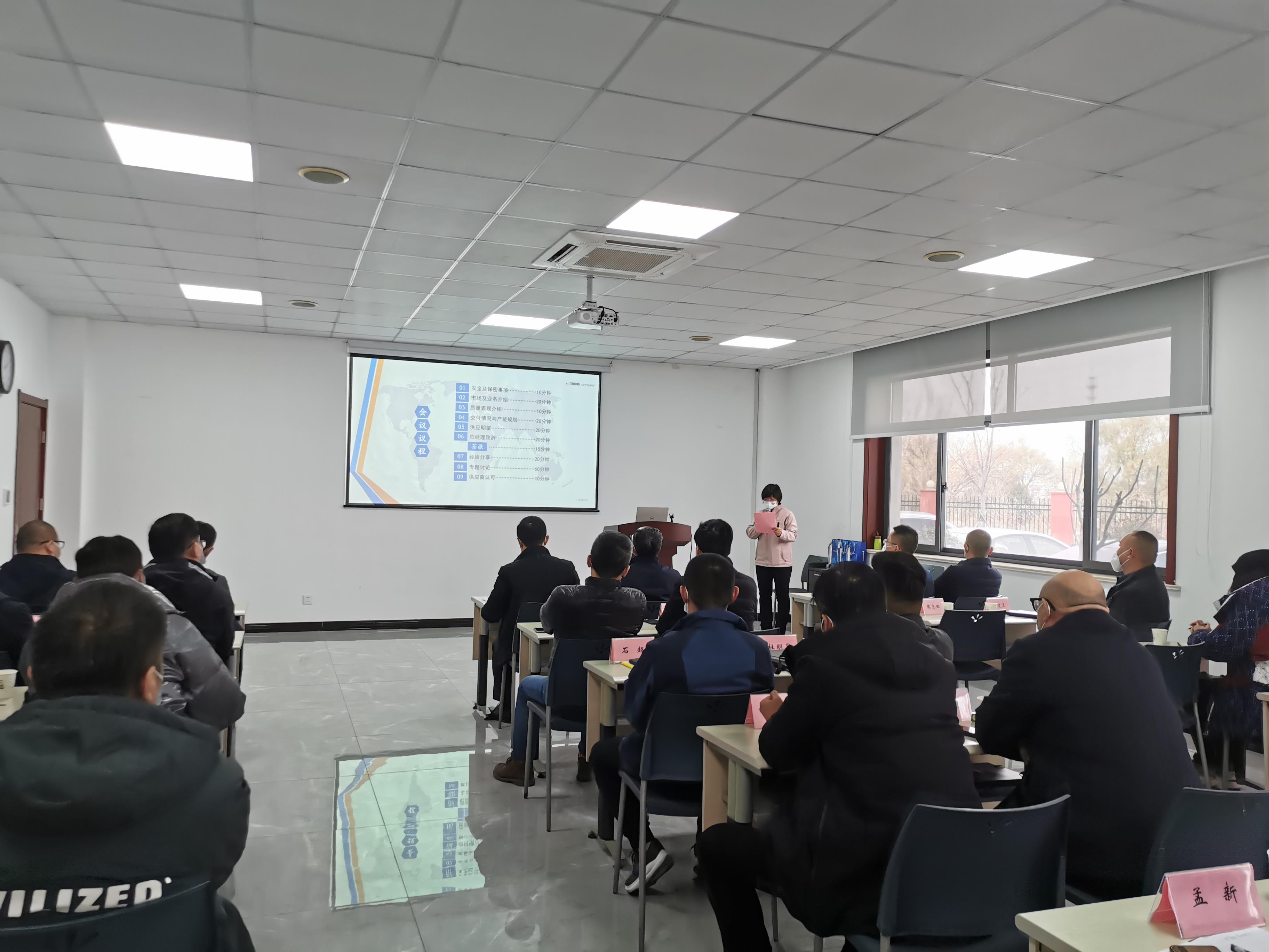 會議在采購部經理歐陽瑞平的歡迎辭中展開。依次由公司副總經理李選舉做《市場與業務》介紹,質量部經理劉保良做《2022年質量表現》回顧,公司副總經理王衛國做《交付情況與產能規劃》分析,采購部經理歐陽瑞平對2023年供應商的交付提出要求和期望。幾位領導緊扣會議主題,指出產品質量在業務拓展、降低成本、及時交付等方面的重要性。