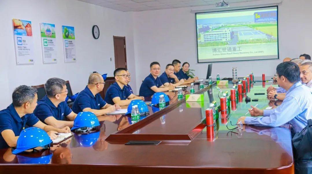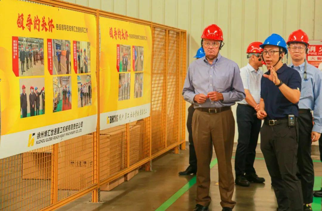 8月1日,卡特彼勒液壓挖掘機全球高級副總裁Tom Frake、卡特彼勒全球高級副總裁楊程建、卡特彼勒液壓挖掘機首席財務官Sandeep Virmani、卡特彼勒挖掘機全球采購經理Frank Li等一行7人到博匯世通東環廠區參觀訪問。博匯集團董事長付健、公司董事長兼總經理付子一等領導陪同。