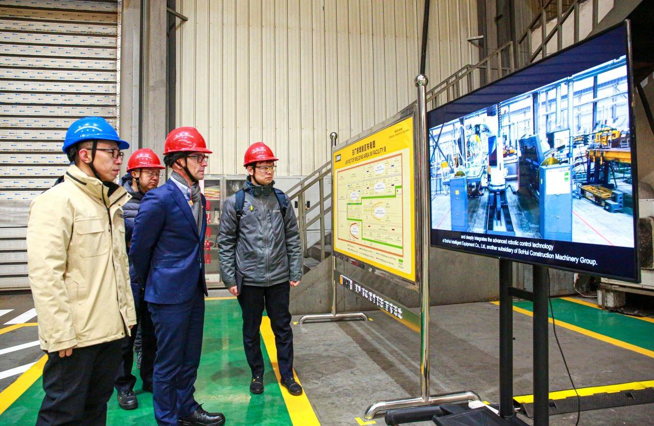 1月23日,卡特彼勒集團總裁Tony Fassino、卡特彼勒高級副總裁楊程建、卡特彼勒中國運營部副總裁馬建平、卡特彼勒挖掘事業部采購經理汪銳、李宗玉等一行5人蒞臨博匯世通東環廠區考察訪問。博匯集團董事長付健,博匯世通總經理付子一等領導全程陪同。