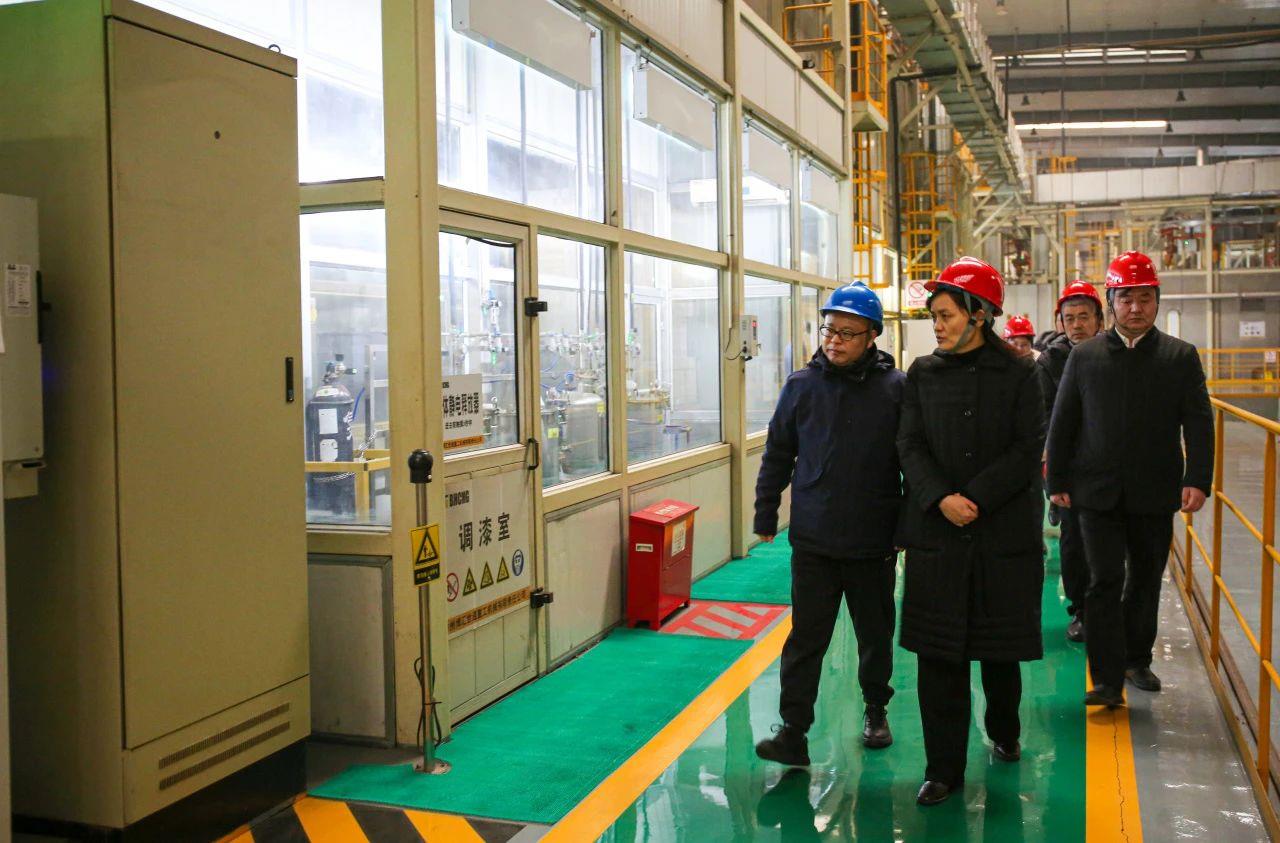 隨后,陳琳一行參觀了東環廠區車間生產現場,詳細了解公司配重焊接機器人生產線、水性漆自動噴涂生產線的生產工藝等情況,對公司自動化智能化生產水平表示認可和肯定,對企業呈現的良好發展態勢表示贊賞。