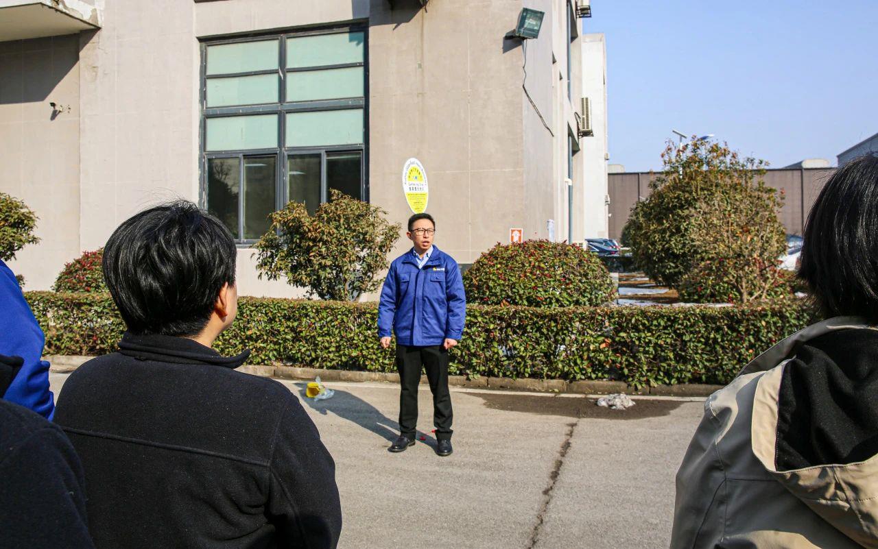 隨著火災警報鈴的響起,在現場安全員的引導下,全體員工迅速反應,立即放下手上的工作,捂住口鼻、低頭彎腰,以最快的速度沖出辦公樓,撤離疏散至緊急集合地點。隨后,安全員向大家講解了如何正確使用逃生面具。
